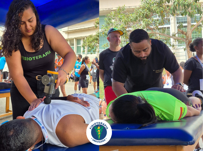 Aluna e egresso da Univiçosa prestam atendimento fisioterapêutico na Corrida da Prefeitura de Viçosa 2025