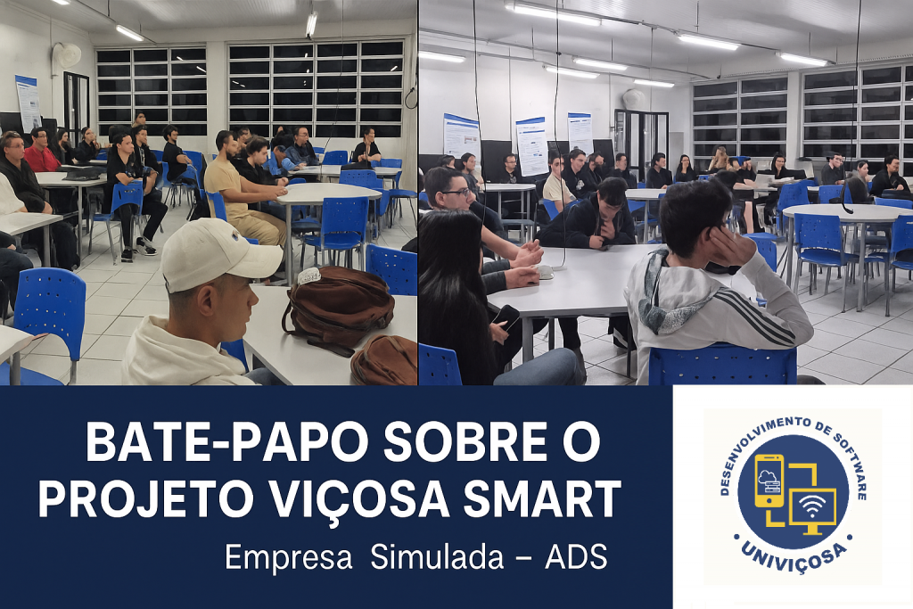 Na noite de ontem, os alunos dos cursos de Análise e Desenvolvimento de Sistemas, Engenharia de Computação e Engenharia Civil participaram de um encontro enriquecedor com representantes do projeto Viçosa Smart.